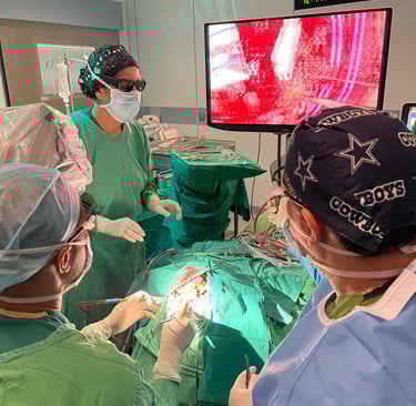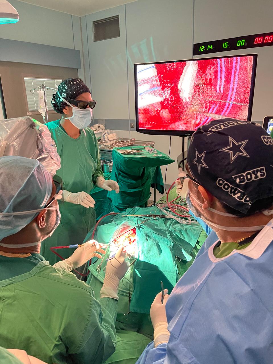 El exoscopio es un dispositivo óptico avanzado utilizado principalmente en cirugía y procedimientos médicos complejos. A diferencia del microscopio tradicional, el exoscopio proporciona una vista en 3D de alta definición que se proyecta en una pantalla, lo cual permite que todo el equipo médico observe y participe activamente. En este caso, se muestra al Dr. Héctor Lezcano, realizando una cirugía de resección de tumor cerebral empleado el exoscopio. Cirugía realizada en el Hospital José “Chicho” Fábregas en la provincia de Veraguas, Panamá.